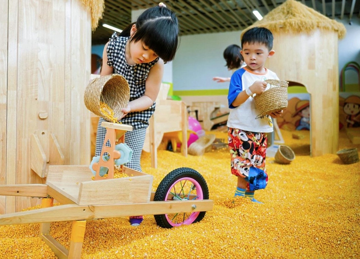 Children will step into a simulated cornfield as little farmers, using various harvesting tools to explore and collect scattered artificial corn kernels. After completing their task, they can receive a real ear of corn from the staff and operate a machine to strip the kernels, experiencing the joy of farm harvesting. Finally, they can exchange their freshly harvested corn kernels for a delicious, freshly popped batch of popcorn, enjoying the magical journey from harvest to treat!